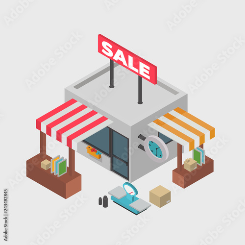 Isometric Shop And Supermarket With Awnings Vector